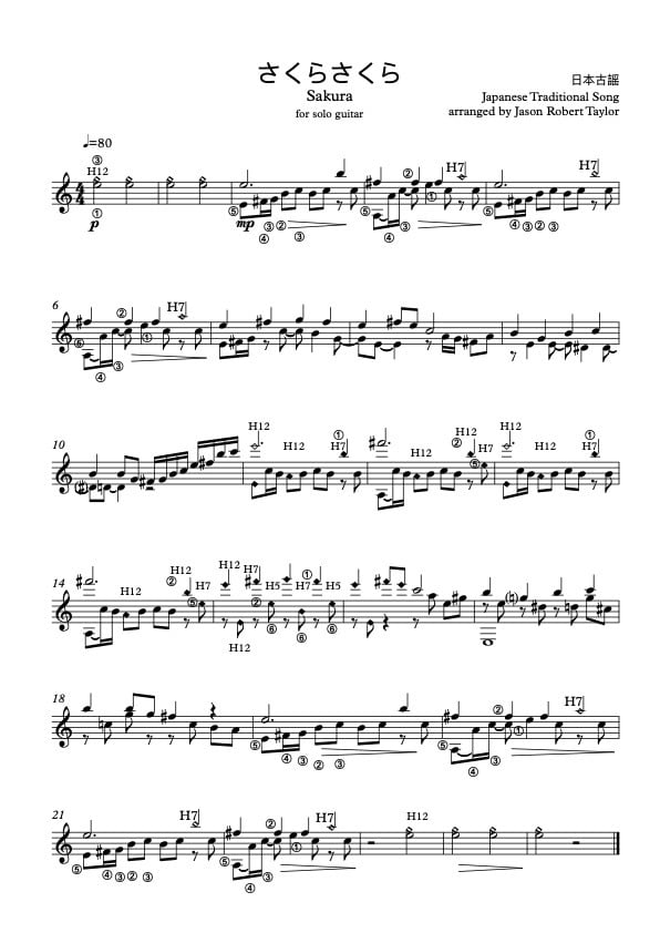 日本の音楽の美しさをギターソロで楽しむことができる作品です。この楽譜は、四つの異なる日本の伝統的な曲を取り入れており、それぞれの曲が持つ独特の情感をギターで表現することができます。演奏者の技術レベルに応じたアレンジが施されているため、初心者から上級者まで楽しむことができる内容となっています。